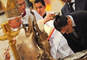 Pope Benedict baptizing former Muslim. Six million adult Muslims from all over the world are converting yearly to Christianity; mainly to Catholicism.